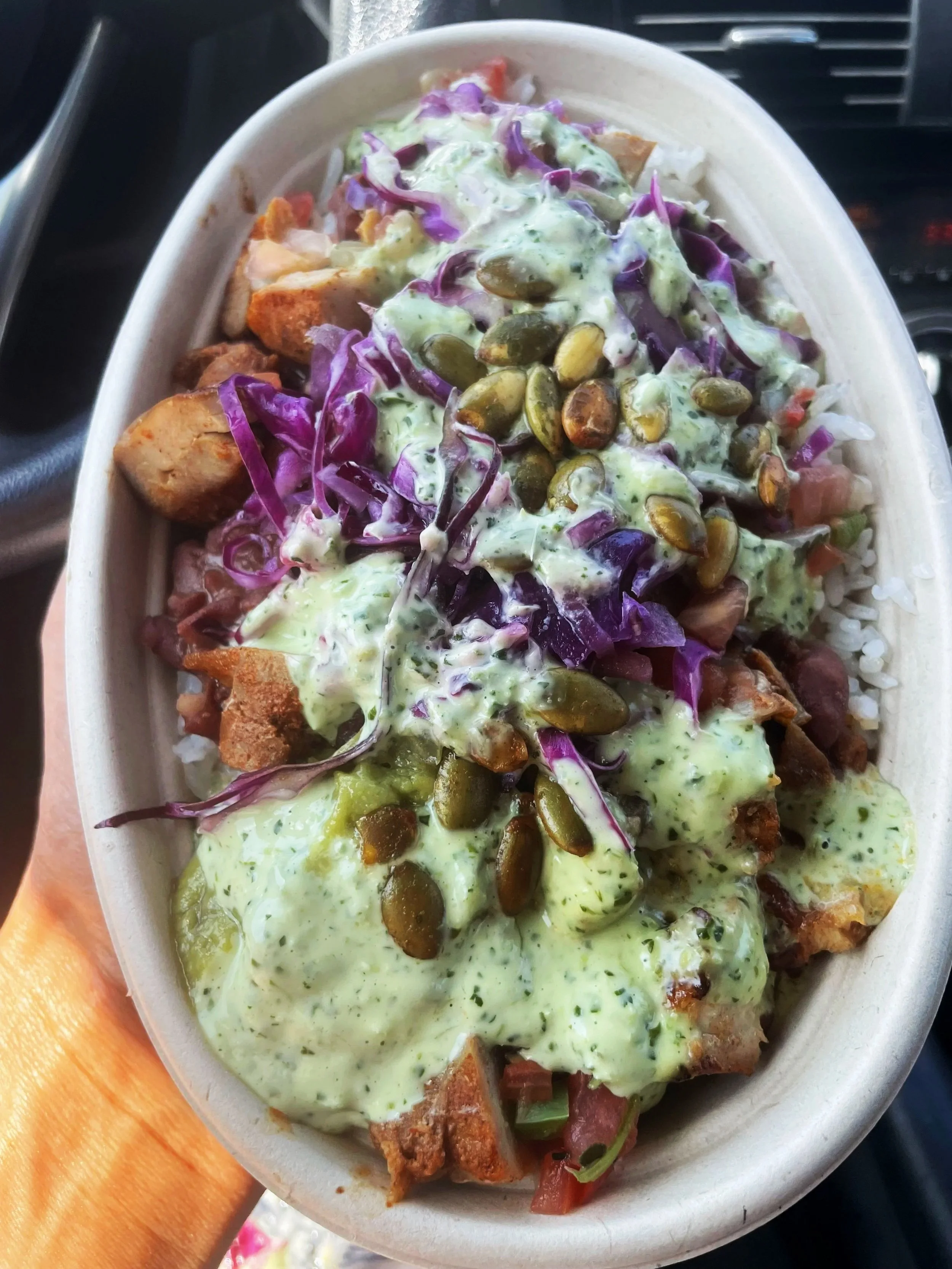 First of all, Santana’s a phenomenal musician. Secondly, the reviews were good and the photos showed lunchy-looking rice bowls, only two minutes away.